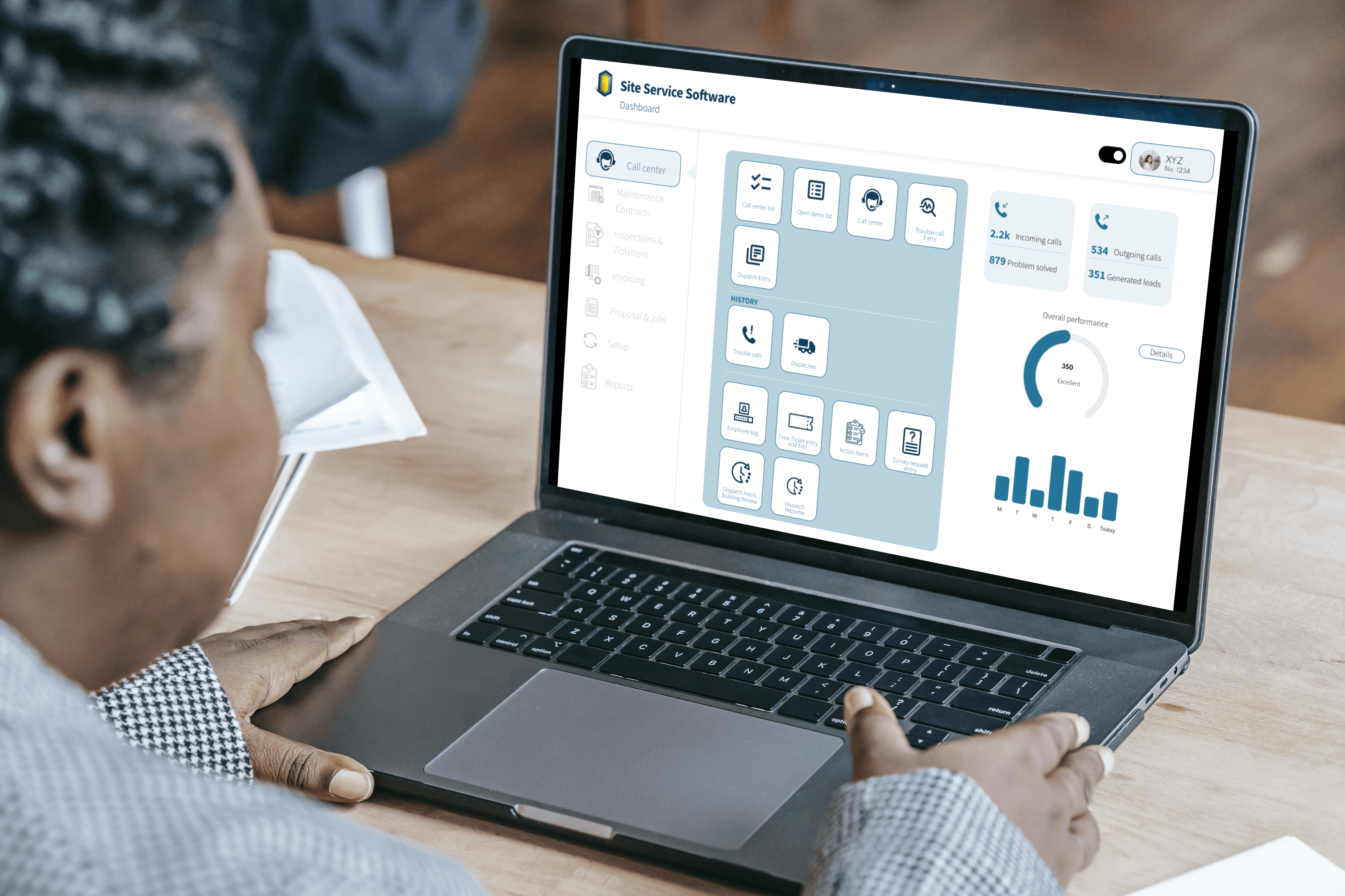 Clear access to call center functions and live performance insights supports agents in managing requests efficiently while maintaining situational awareness across operations.