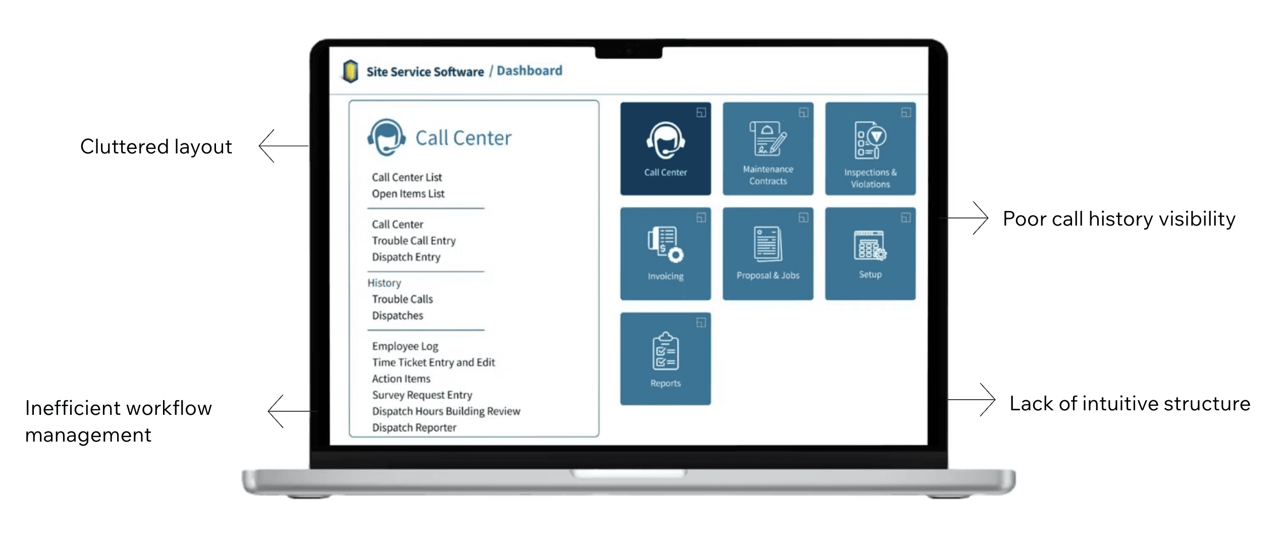 Site Service Software supports building operators and call center agents in handling elevator emergency calls and dispatching help quickly. The existing interface was functional but visually cluttered and difficult to navigate during high-pressure situations. The goal of this redesign was to streamline emergency workflows, reduce cognitive load, improve visibility into call history, and deliver a cleaner UI that supports fast decision-making in real time.